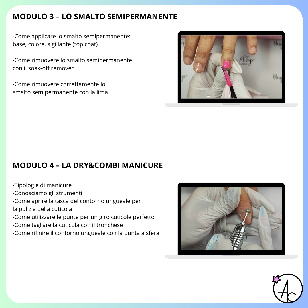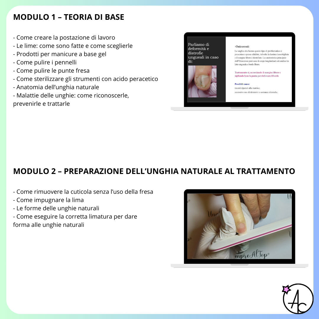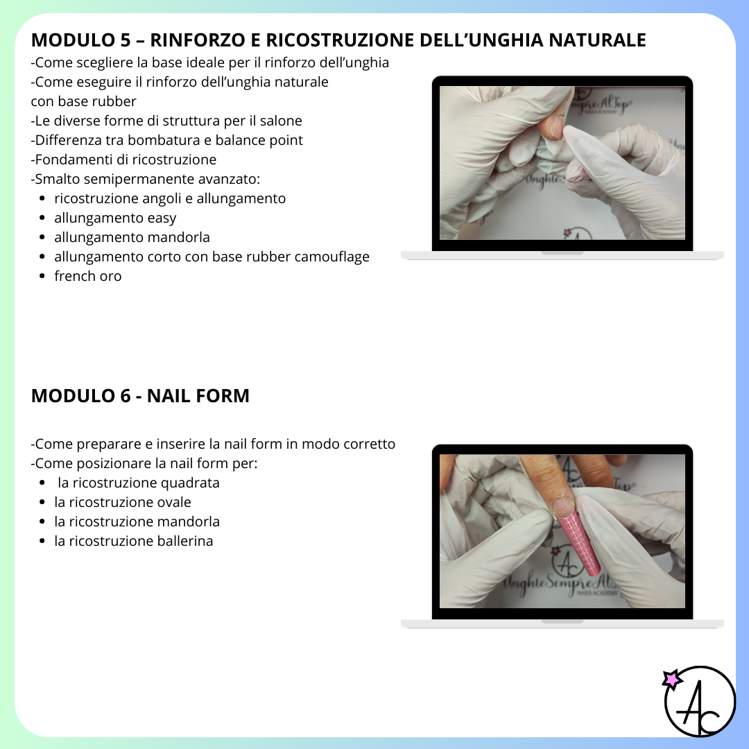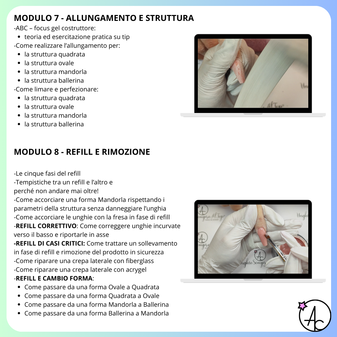 In soli due mesi saprai come allungare, strutturare e limare le unghie ricostruite secondo i giusti parametri.